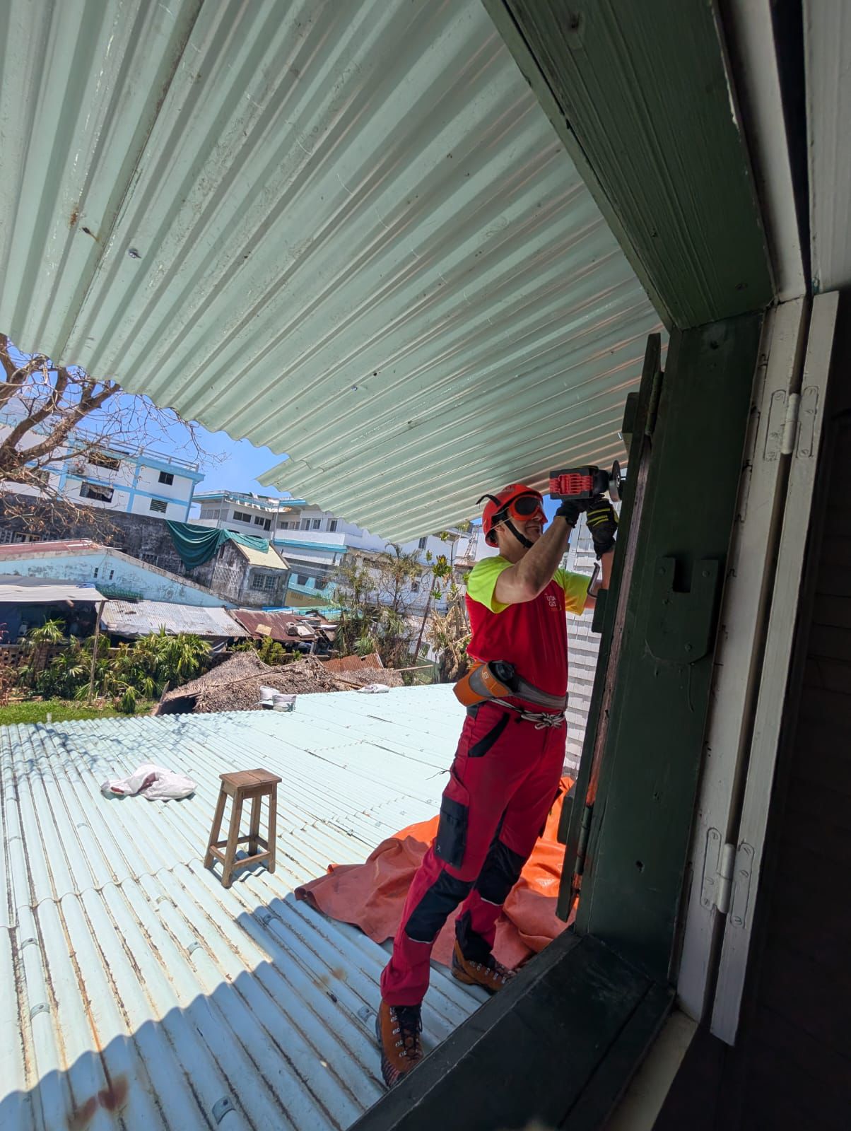 L'USAR GIS a constitué une équipe de 10 bénévoles dès le lendemain du passage du cyclone dévastateur "IRMA". Le passage du deuxième cyclone "JOSÉ" ayant bloqué les équipes de secours en Guadeloupe (base arrière des secours) l'USAR GIS a été engagée pour 10 jours en autonomie complète. Dès son arrivée sur l'île de Saint-Martin, l'USAR GIS a été affecté sur la Ville de Marigot au lycée des îles du nord dans le quartier de Concordia. L'objectif de sécurisation de l'établissement afin d'ouvrir au plus vite et en sécurité a été atteint par la mise en œuvre de reconnaissances par drone afin de déterminer les actions prioritaires par la dépose de tôles arrachées, des ouvrants et cloisons menaçant de tomber, une remise en fonctionnement partiel de l'électricité et le réseau informatique. Ce travail a été réalisé grâce aux compétences professionnelles complémentaires des 10 membres de l'association et en accord avec madame le proviseur de l'établissement et le centre de coordination opérationnel des secours. L'USAR GIS a également bénéficié du renfort de l'ONG "Architectes de l'urgence " et d'une section militaire du SMA.A notre départ, l'ensemble des 4 hectares du site était opérationnel pour une ouverture sécurisée de l'établissement.